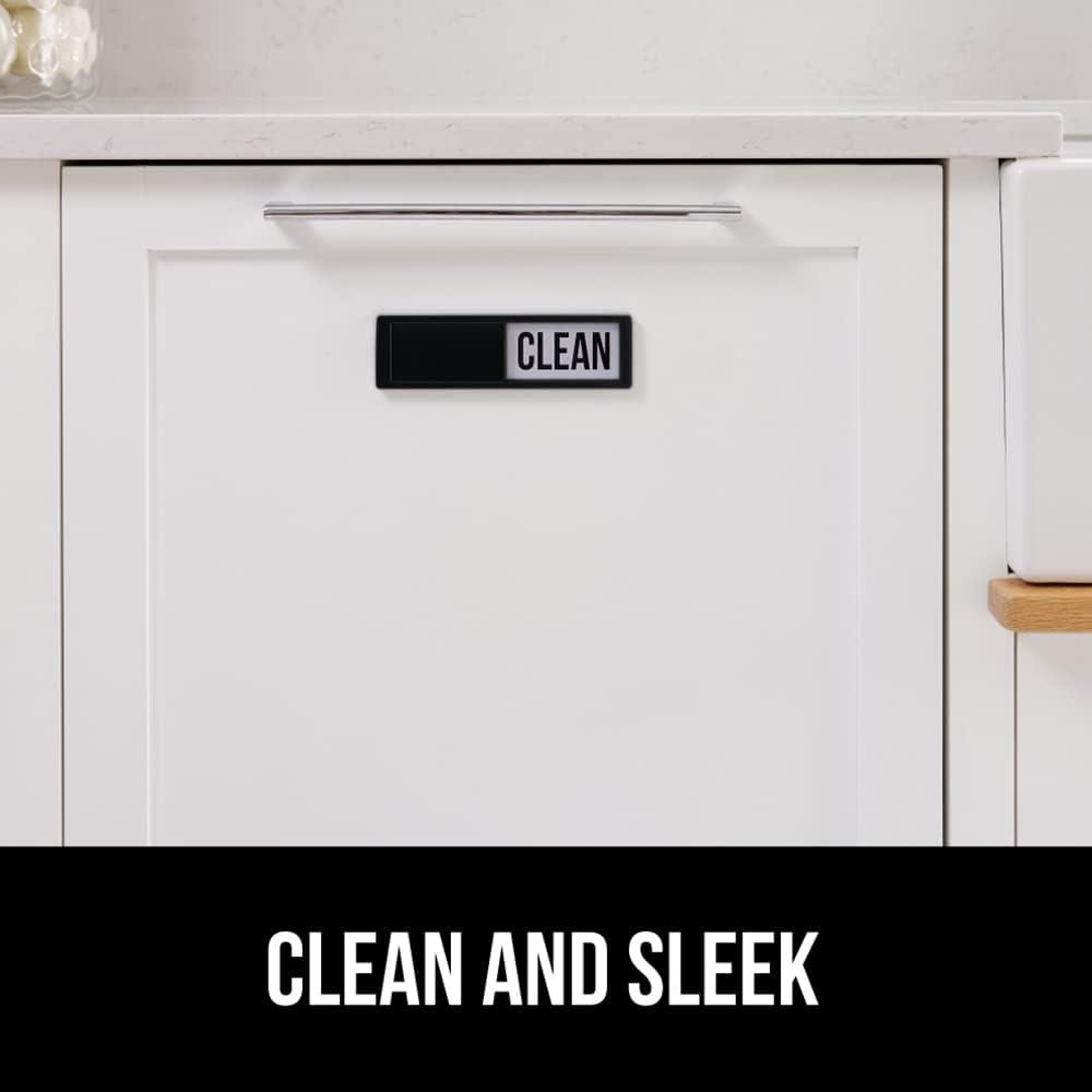 STAYS IN PLACE: the Gorilla Grip Dishwasher Magnet Clean Dirty Sign is designed to stay firmly in place on all dishwashers; it features a strong magnet that grips magnetic appliances; will not budge as the dishwasher is opened or closed; also includes two adhesive dots that adhere to non magnetic appliances; dots peel off easily