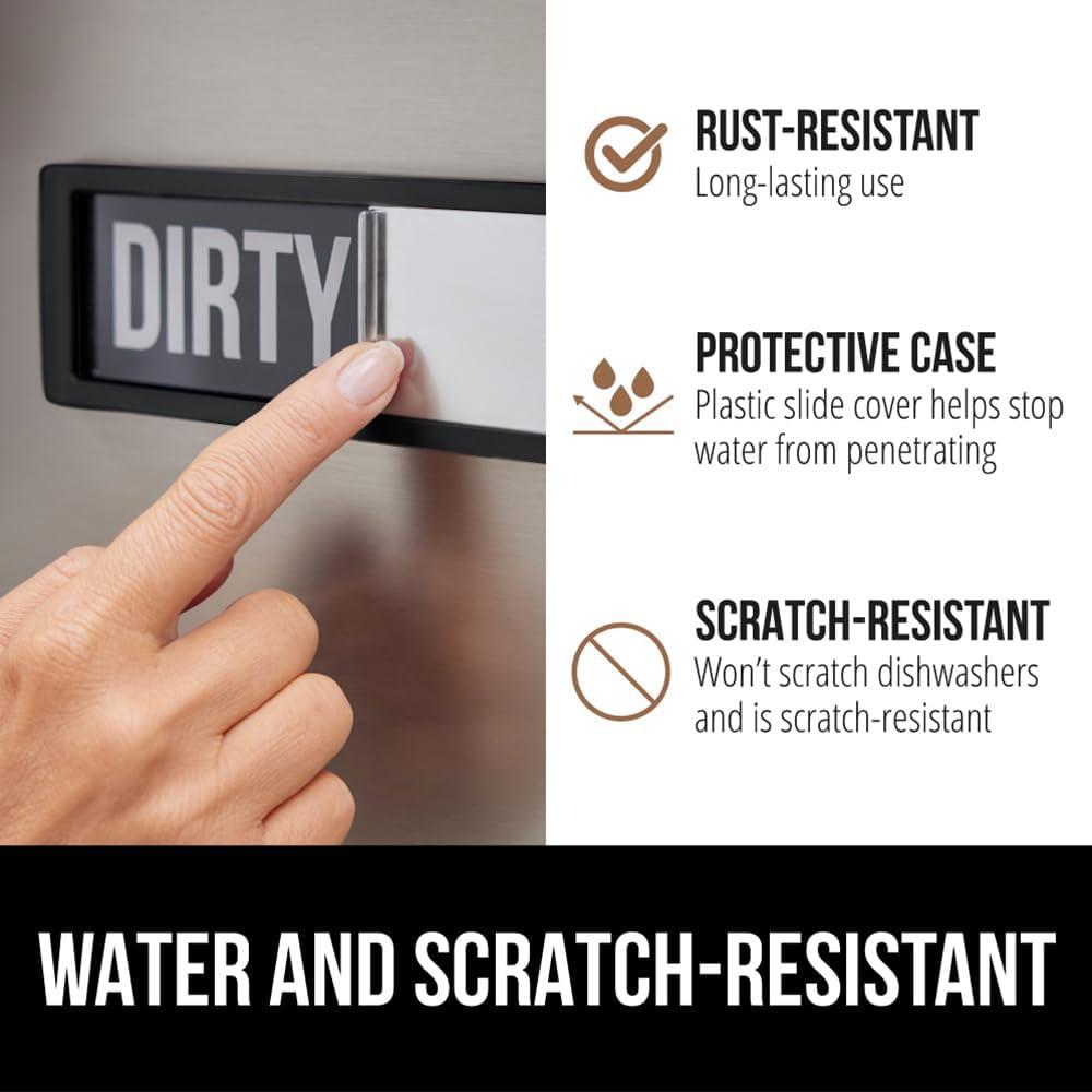DURABLE CONSTRUCTION: disher magnet clean dirty sign is commercial grade and designed to last; rust and scratch resistant so it will stay looking great; also features a plastic casing that makes it water resistant so water cannot permeate through; will not scratch dishwashers