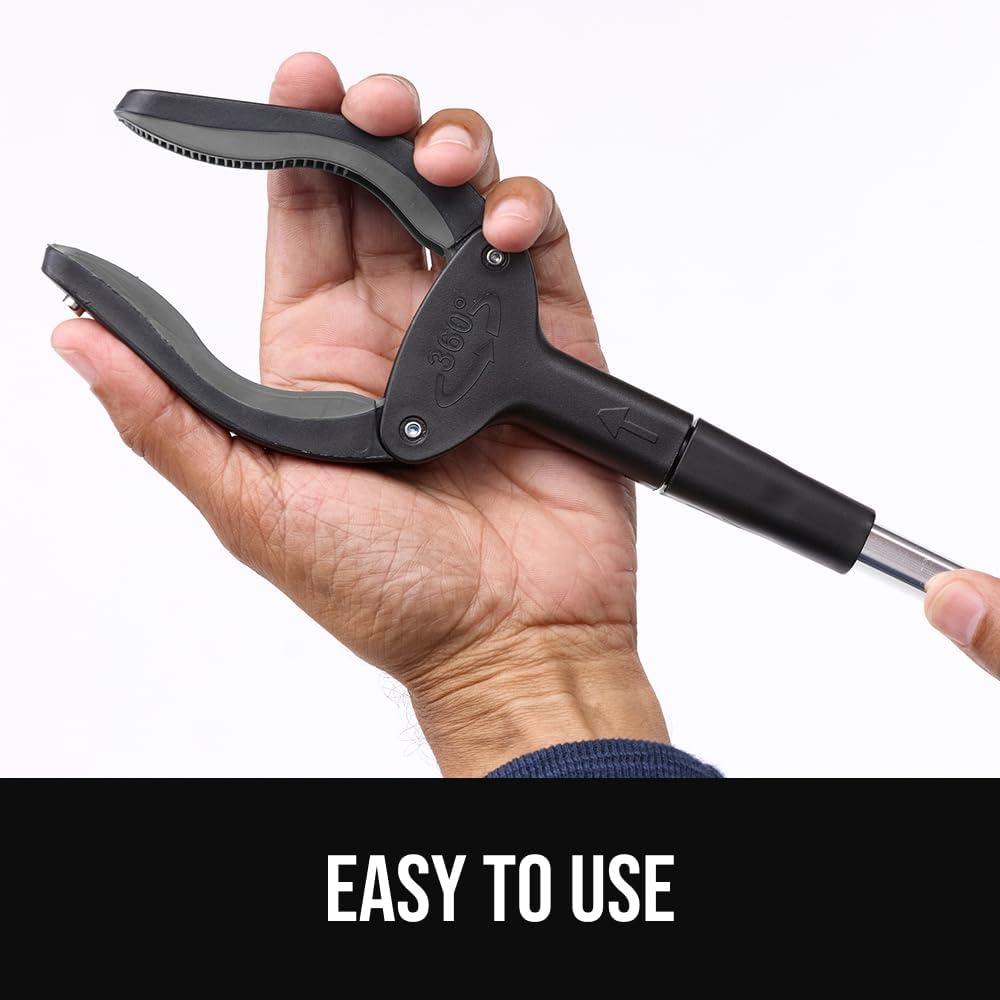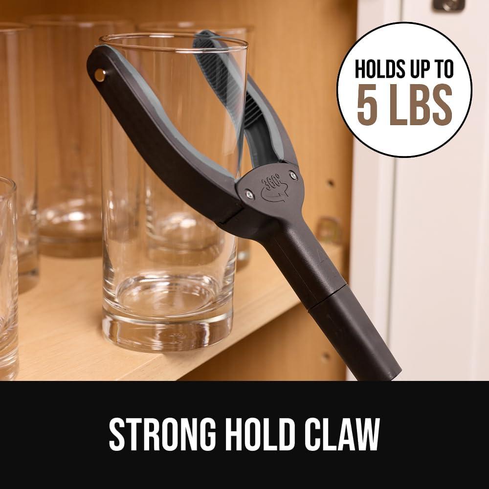 STRONG HOLD, RUBBER LINED CLAW: textured rubber lined claw grabber provides a firm, secure grip while grabbing hard to reach items; with a wide opening of 3 inches, high strength claw can hold up to 5 pounds vertically and 2 pounds horizontally without slipping; grabber is reinforced with an internal iron wire for added strength that won’t weaken over time