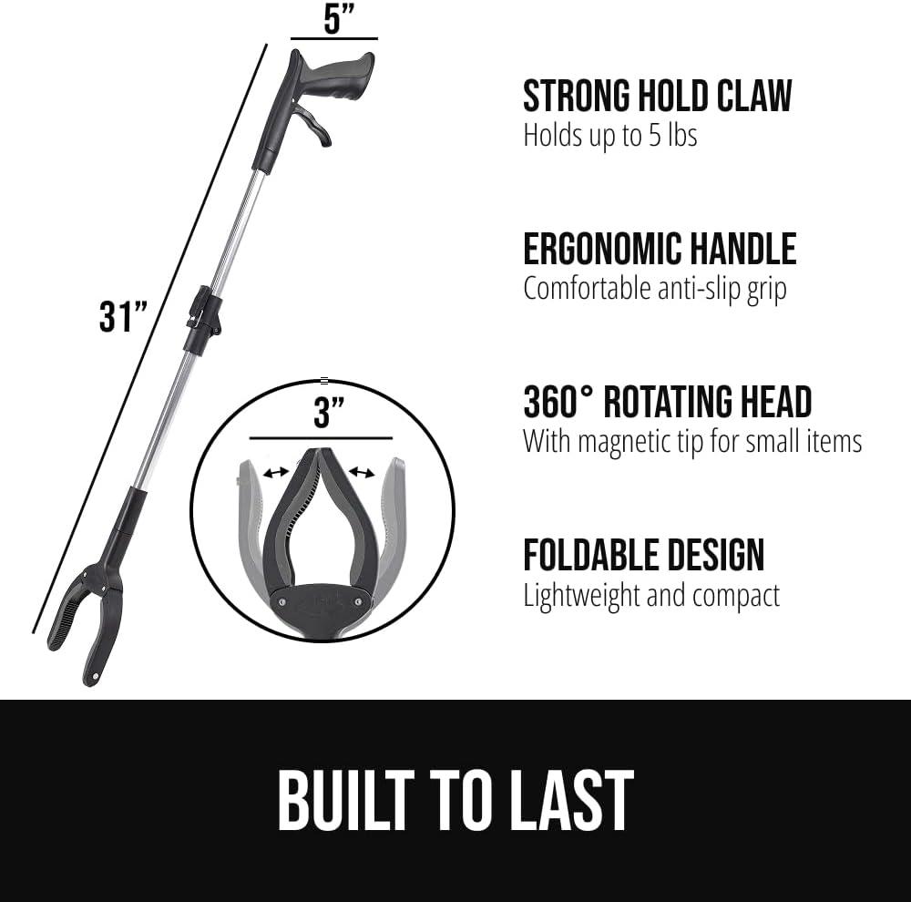 INDOOR AND OUTDOOR USE, GREAT FOR HARD TO REACH PLACES: reacher tool is great for seniors, post surgery recovery, or individuals with limited mobility; 31 inch reaching aid helps grasp items on high shelves, behind furniture, or in tight spaces; grabber is a practical tool for home, office, or outdoor use
