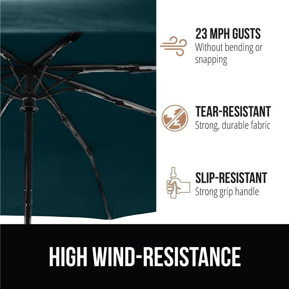 GORILLA GRIP Strong Stick Umbrella for Rain, Compact Travel One-Click Automatic Open Close, Lightweight, Portable, US Designed Reinforced Fiberglass Ribs, Wind Resistant, Easy Collapse, Cats Dogs(Hunter Green)