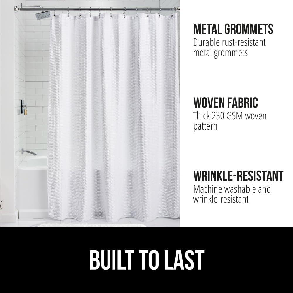 HOTEL STYLE WOVEN PATTERN: bring luxury to any bathroom with this soft and classic shower curtain; constructed from classic, soft material and woven into a chic waffle weave design, this curtain can easily transform any bathroom into a spa getaway and bring hotel style luxury to your home; the ultra thick fabric is so durable