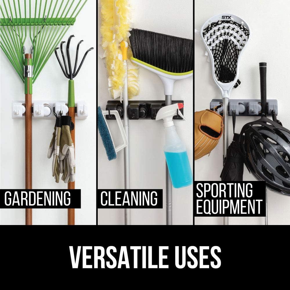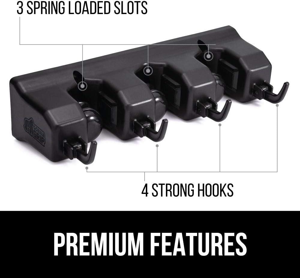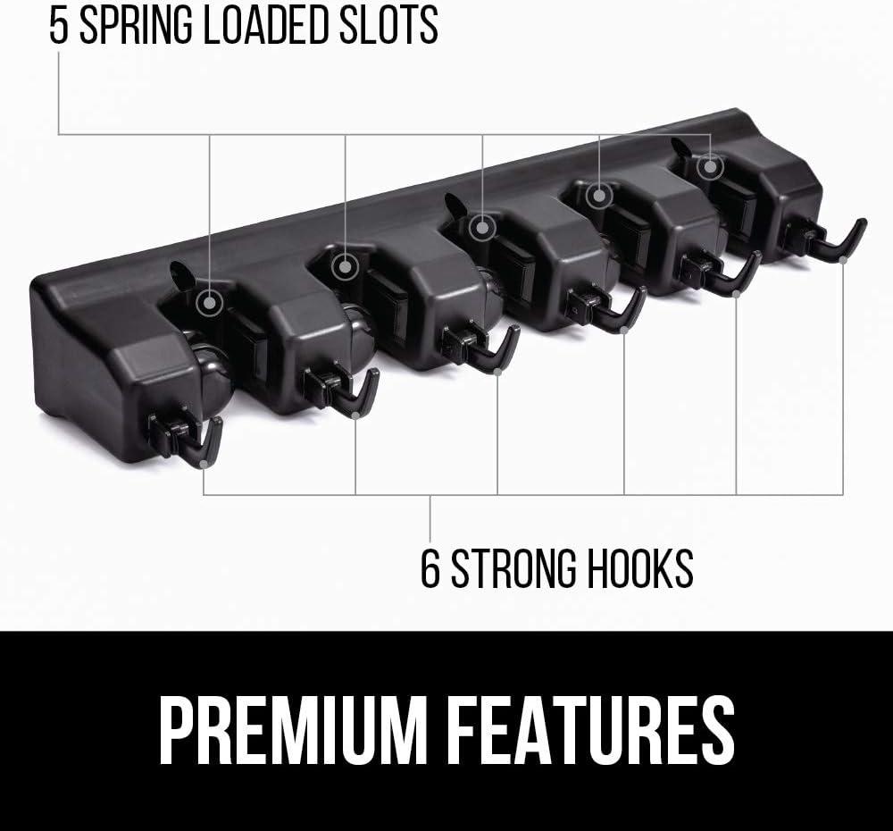 GORILLA GRIP Wall Mount Hook Fixture, Also Includes Slots to Hold Mop, Broom, Tools, Easy Install, Organize Cleaners, Tools, Home, Kitchen, Garage, 6 Hooks 5 Slots, Black(Black)