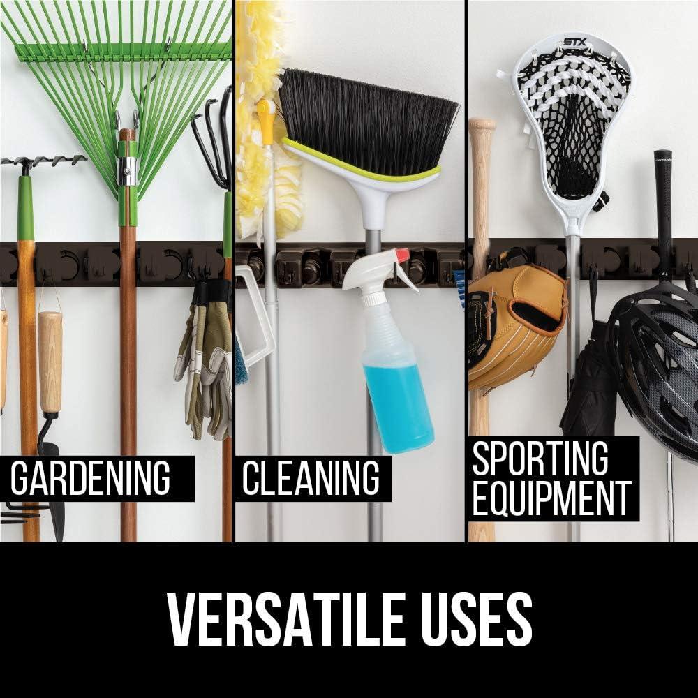 GORILLA GRIP Wall Mount Hook Fixture, Also Includes Slots to Hold Mop, Broom, Tools, Easy Install, Organize Cleaners, Tools, Home, Kitchen, Garage, 6 Hooks 5 Slots, Black(Brown)