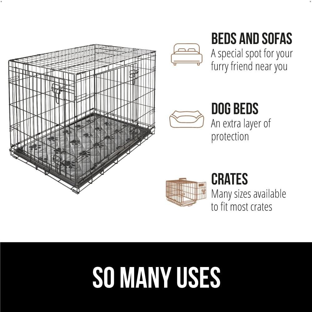 DOG BEDS, CRATES, AND COUCHES: the pad can be used in so many places; the pad creates a perfect spot for pups who sleep in their owner’s bed; it can be used as an extra layer of protection in dog beds; pad sizing is consistent with most standard size crates; plus, it will protect your couch from jumping pets; a great option for puppy housebreaking and all furry friends, dogs, and cats alike