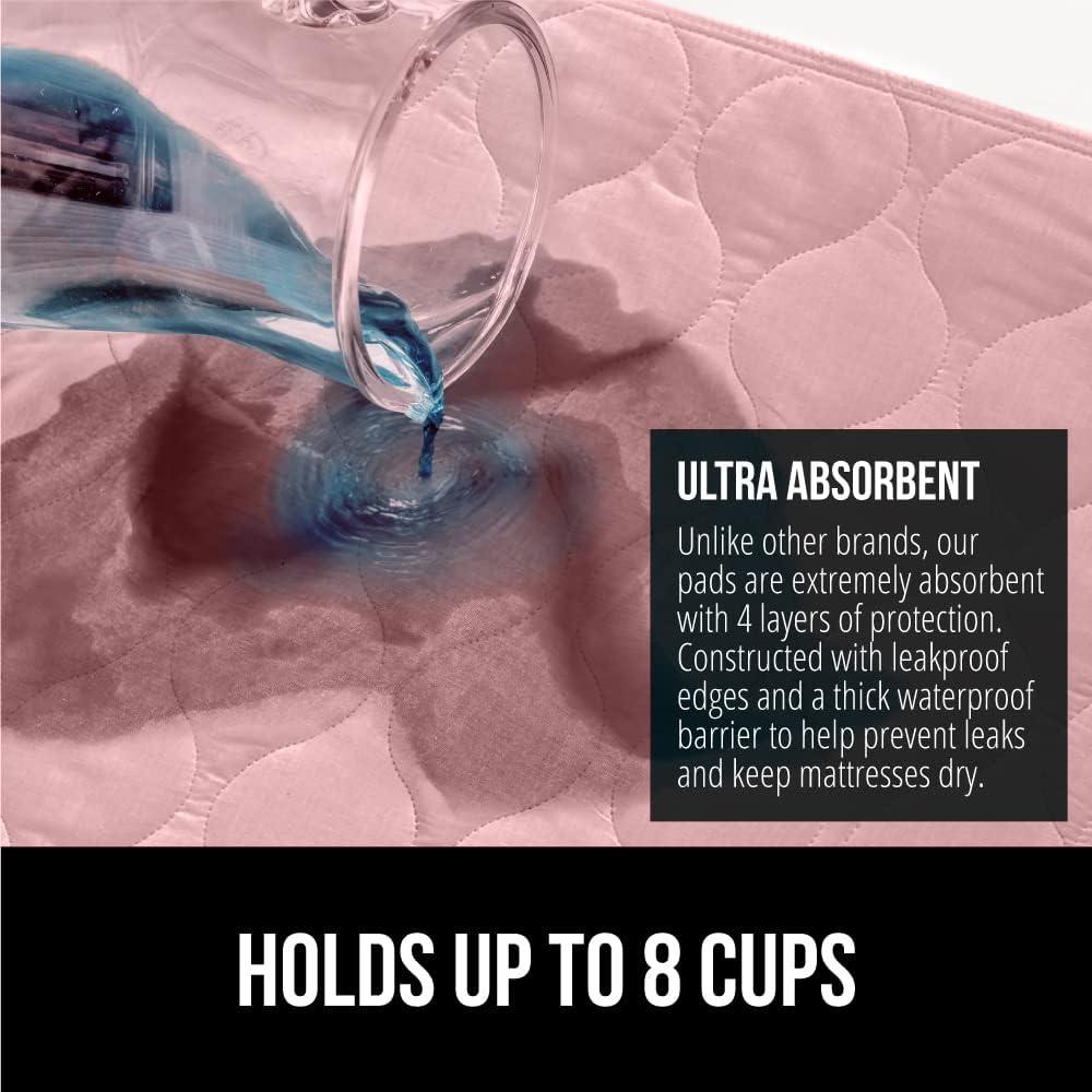 LEAK PROOF PROTECTION: 1 pack; our pad can hold up to 8 cups of liquid, much more than others; moisture is quickly absorbed into the pad and then dispersed throughout, helping to prevent leakage; also features leak proof edges, resilient inner layers and a thick waterproof barrier to offer additional, unparalleled protection that will give you the comfort and security you need