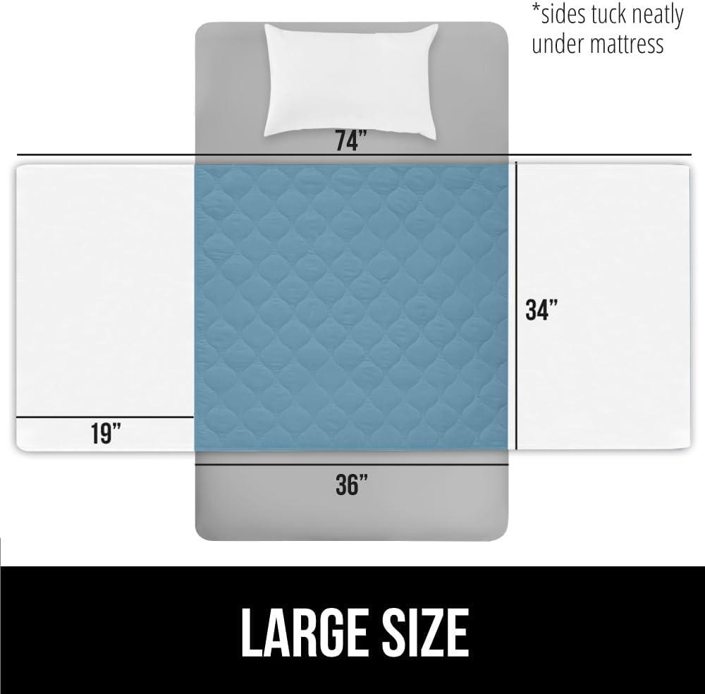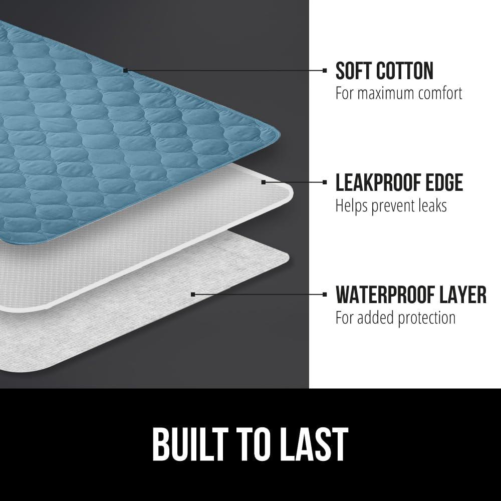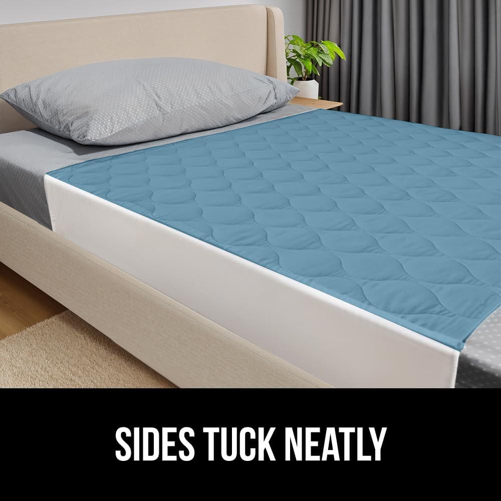 GORILLA GRIP Washable Underpads, Waterproof Reusable Heavy Absorbency Incontinence Bed Pads, Leak Proof Toddler Mattress Pad, 52x34 Slip Resistant Protector for Bedwetting, Adults and Kids, White(Sky Blue)