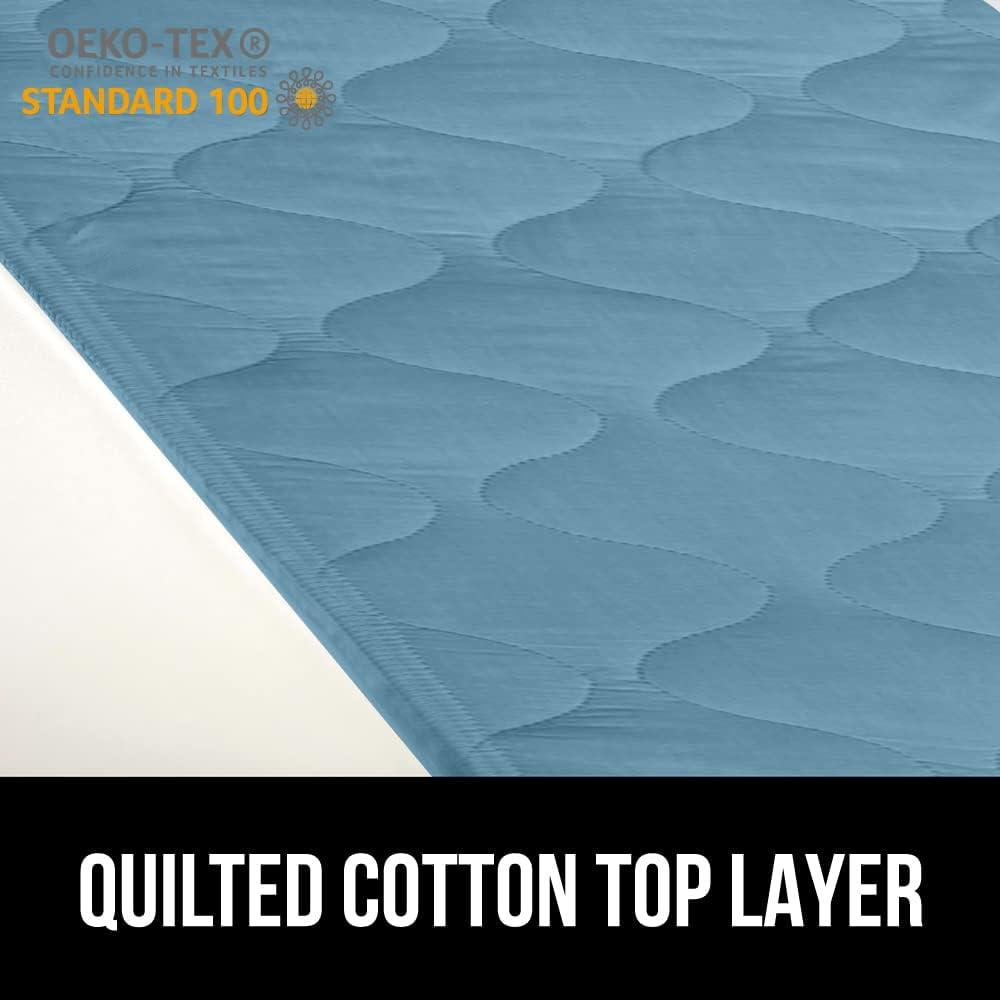 THICK QUILTED COTTON TOP LAYER: the unique 4 layer design is complete with a super soft quilted top that feels great; soft and comfortable; pad is not bulky or too thick, so it cannot be felt while sleeping