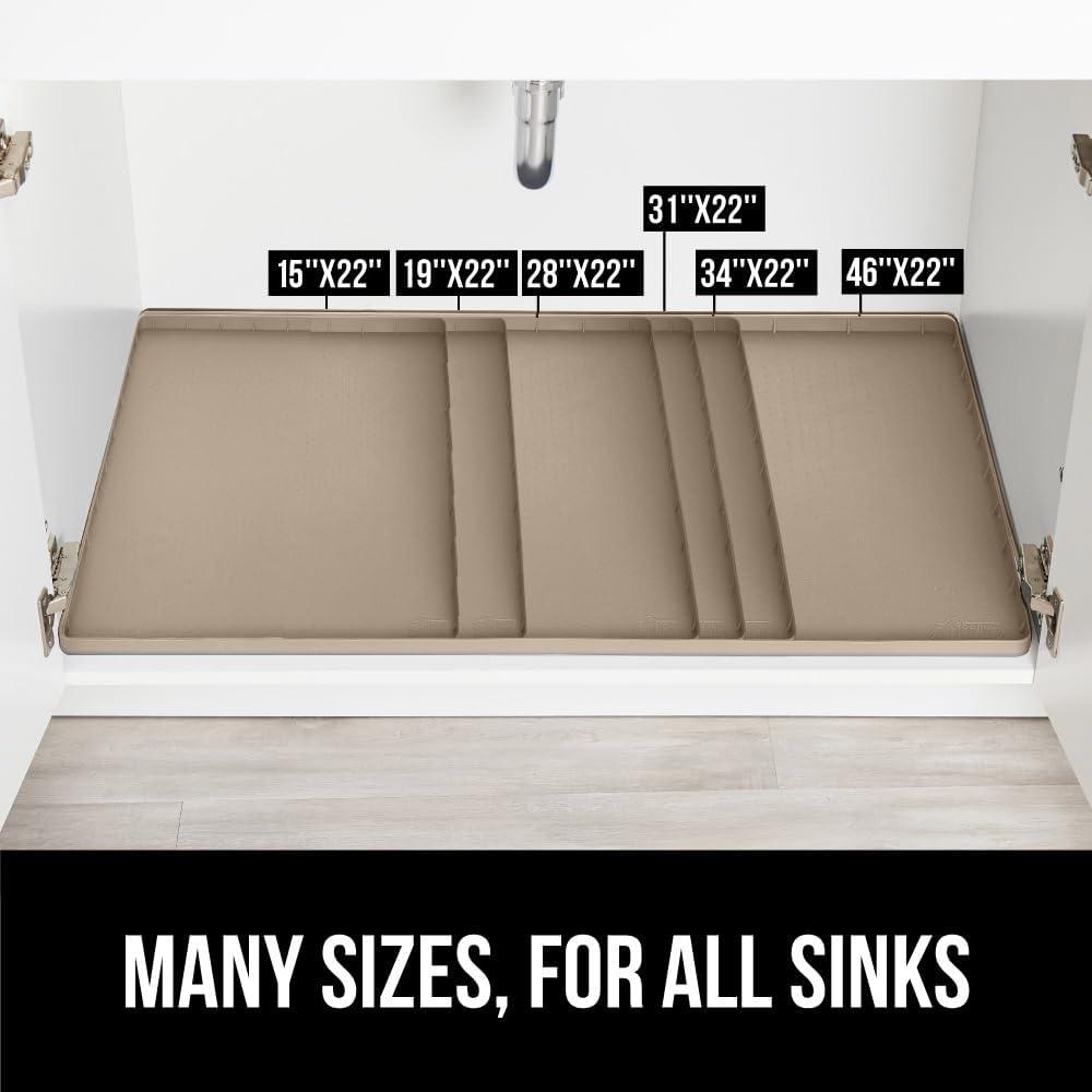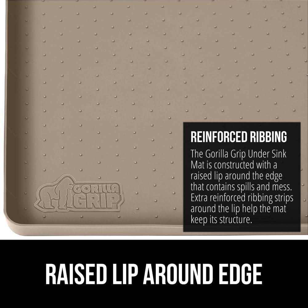 GORILLA GRIP Waterproof Silicone Under Sink Mat with Raised Lip for Kitchen and Bathroom, Cabinet Shelf Liner Stay in Place Mats Dishwasher Safe Drawer Liner, Organizer Tray, 19 x 22 in, Gray(Beige)