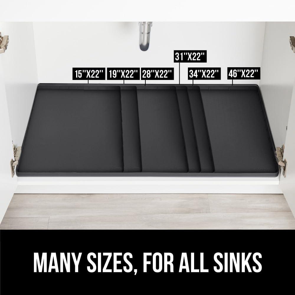 GORILLA GRIP Waterproof Silicone Under Sink Mat with Raised Lip for Kitchen and Bathroom, Cabinet Shelf Liner Stay in Place Mats Dishwasher Safe Drawer Liner, Organizer Tray, 19 x 22 in, Gray(Black)