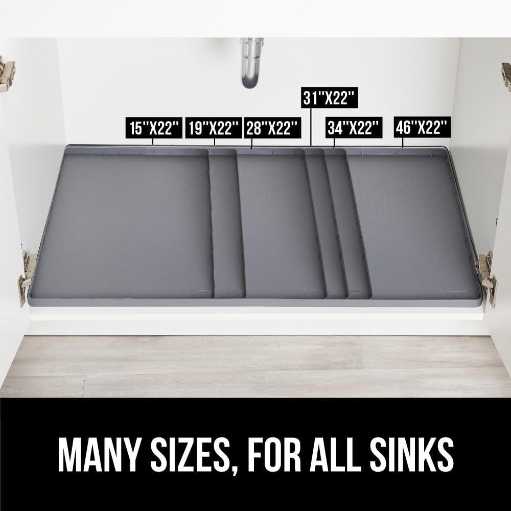 GORILLA GRIP Waterproof Silicone Under Sink Mat with Raised Lip for Kitchen and Bathroom, Cabinet Shelf Liner Stay in Place Mats Dishwasher Safe Drawer Liner, Organizer Tray, 19 x 22 in, Gray(Gray)