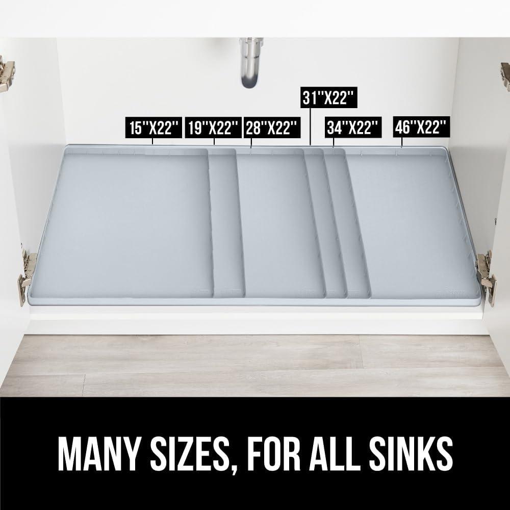 GORILLA GRIP Waterproof Silicone Under Sink Mat with Raised Lip for Kitchen and Bathroom, Cabinet Shelf Liner Stay in Place Mats Dishwasher Safe Drawer Liner, Organizer Tray, 19 x 22 in, Gray(Gray)