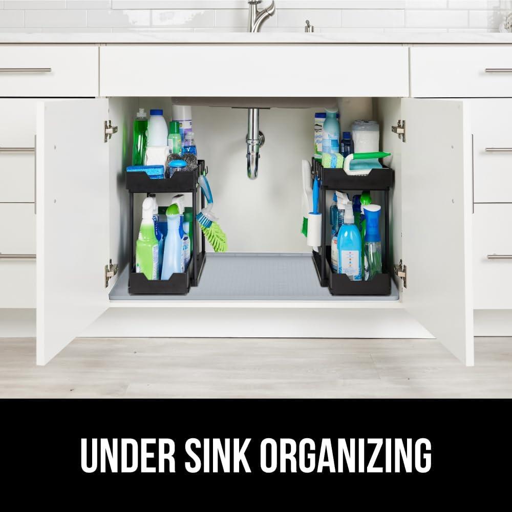 imageGORILLA GRIP Waterproof Silicone Under Sink Mat with Raised Lip for Kitchen and Bathroom Cabinet Shelf Liner Stay in Place Mats Dishwasher Safe Drawer Liner Organizer Tray 19 x 22 in GrayGray