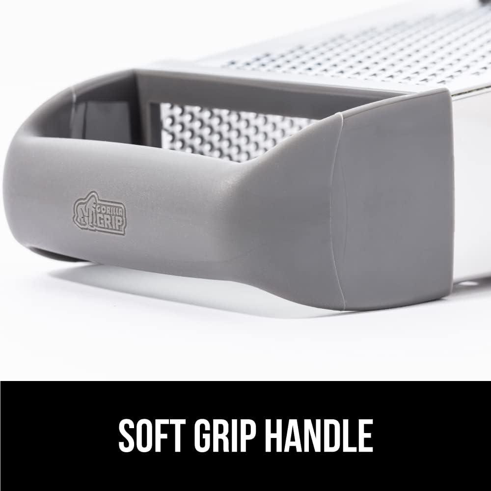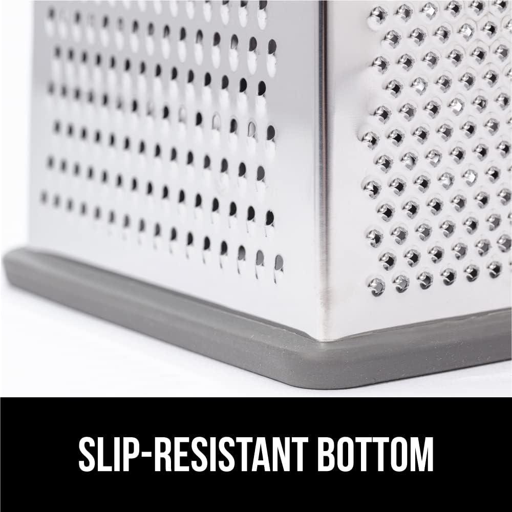GORILLA GRIP XL 4-Sided Cheese Grater With Container, 100% BPA-Free Stainless Steel Box Graters, Parmesan Shredder, Grate Cheeses, Shred Veggies, Slip Resistant Handle, Dishwasher Safe Zester, Black(Gray)