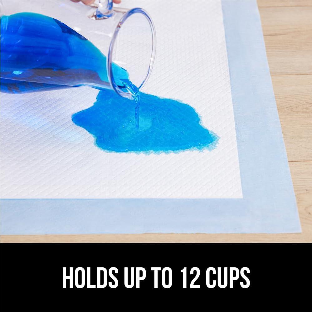 5-LAYER GUARD PROTECTION – ABSORBS UP TO 6.7 CUPS: Engineered for strength and performance, Gorilla Guard disposable pads feature ultra-absorbent 5-layer construction that locks in up to 6.7 cups of liquid to keep floors clean and dry. Perfect for puppy training and senior dog accidents.