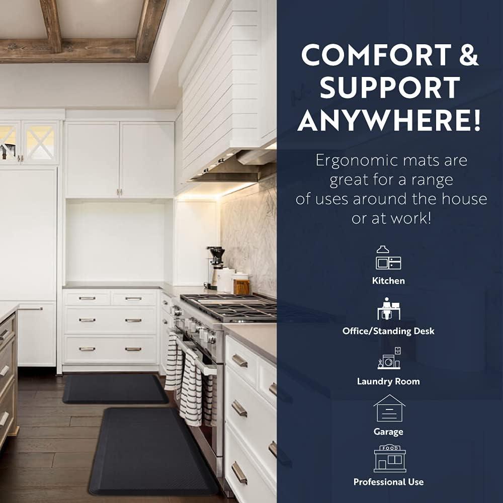 KANGAROO Thick Ergonomic Anti Fatigue Mats for Kitchen Floor, Cushioned Standing Office Desk Mat, Waterproof Scratch Resistant Topside, Supportive All Day Comfort Padded Foam Rugs, 17×24, Black(Charcoal)