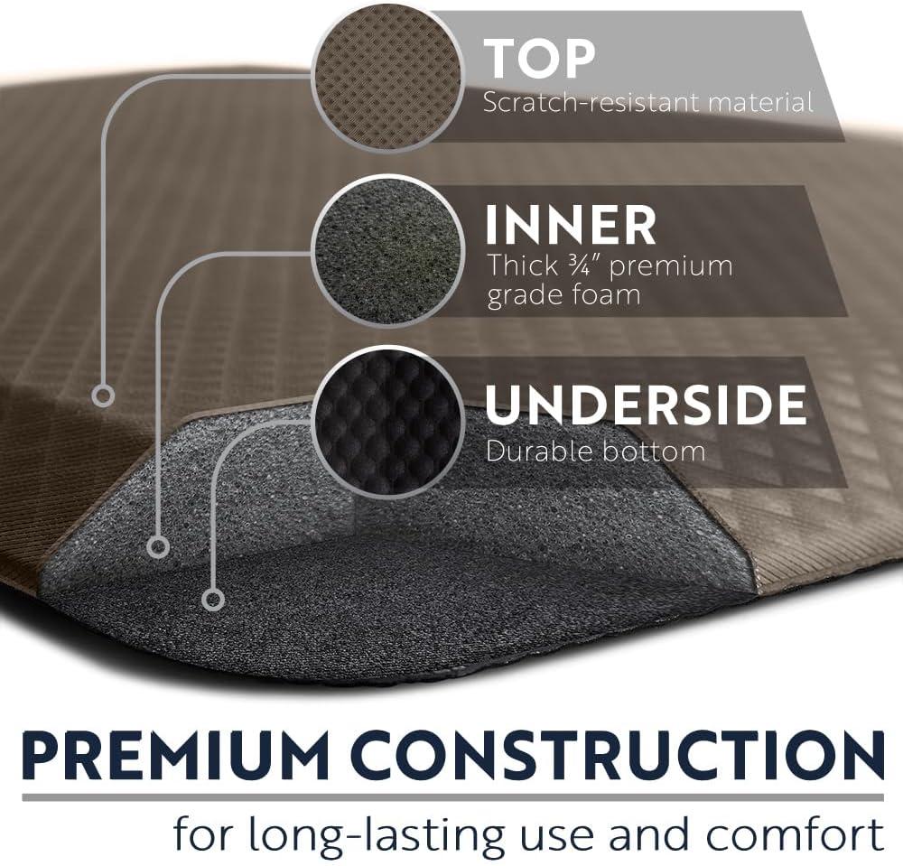 THICK AND SUPPORTIVE CUSHIONING: extra thick, three quarter inch foam mat is extremely comfortable and engineered to help keep you supported; premium foam inner layer for strong rebound and maximum support; your feet will thank us later