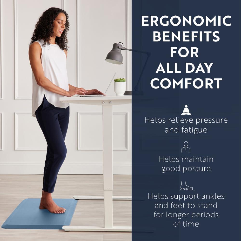 imageKANGAROO Thick Ergonomic Anti Fatigue Mats for Kitchen Floor Cushioned Standing Office Desk Mat Waterproof Scratch Resistant Topside Supportive All Day Comfort Padded Foam Rugs 17x24 BlackSky Blue