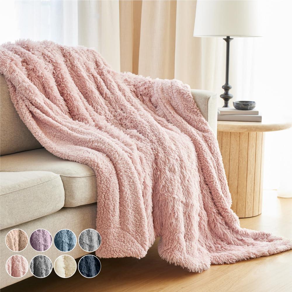The Connecticut Home Co Throw Blanket for Couch, Soft Fluffy Room Decor, Cozy Warm Throws for Bed, Couches, Gifts for Women, Bedroom Cute Aesthetic Blankets Faux Fur and Sherpa, 65×50, Gray(Dusty Rose (Shag))