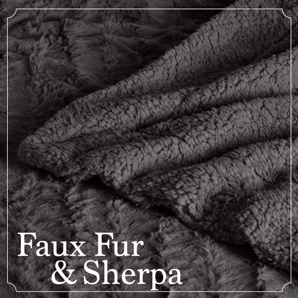 REVERSIBLE FAUX FUR AND SHERPA: created with a dual layer of high quality faux fur topside and a thick sherpa underside; double the thickness and double the warmth; reversible design allows for two ways to cuddle up and add extra style to your home