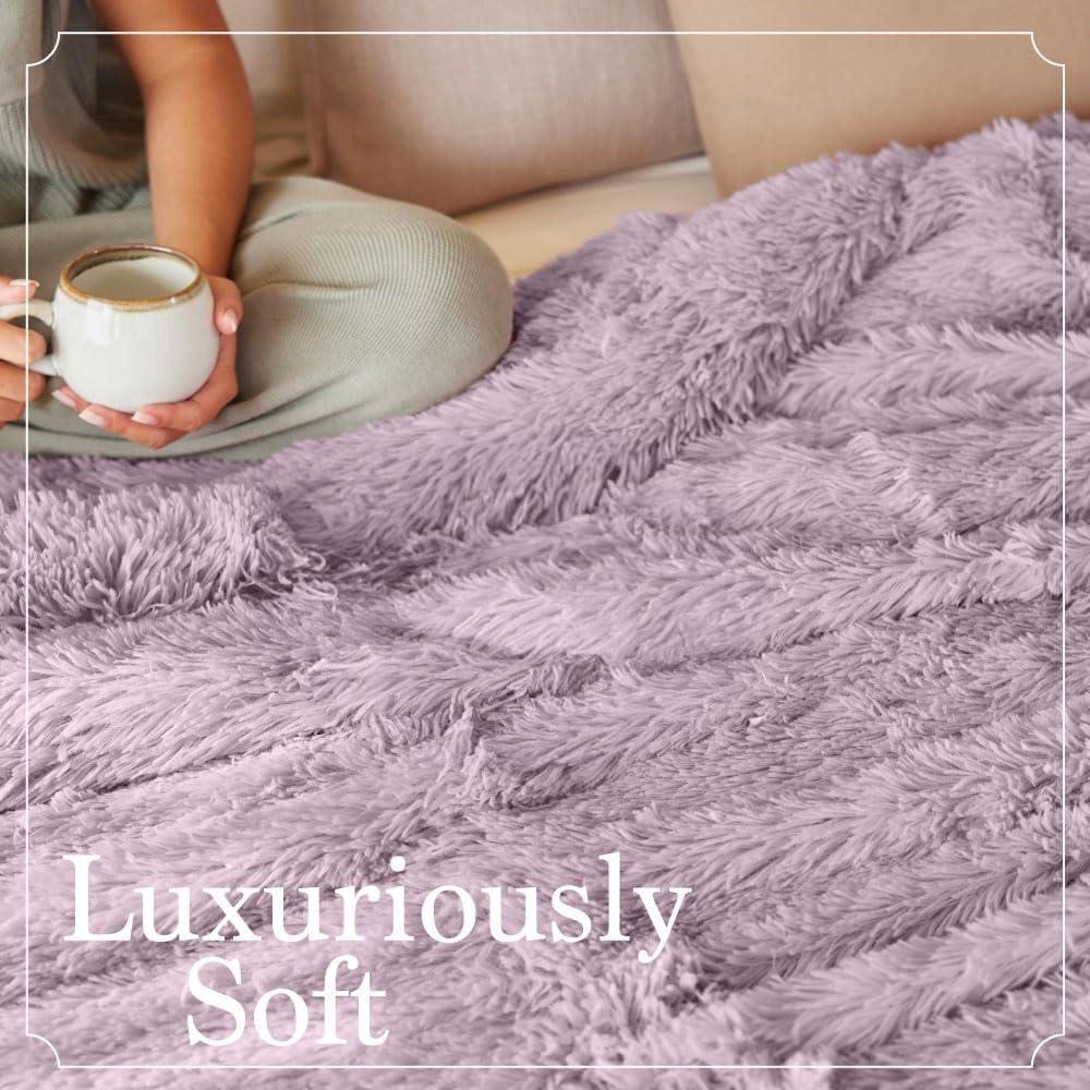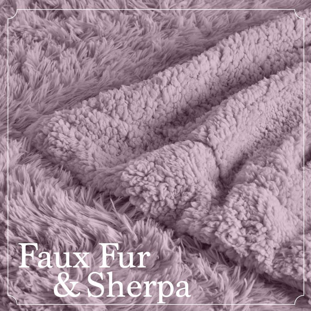 The Connecticut Home Co Throw Blanket for Couch, Soft Fluffy Room Decor, Cozy Warm Throws for Bed, Couches, Gifts for Women, Bedroom Cute Aesthetic Blankets Faux Fur and Sherpa, 65x50, Gray(Purple (Shag))