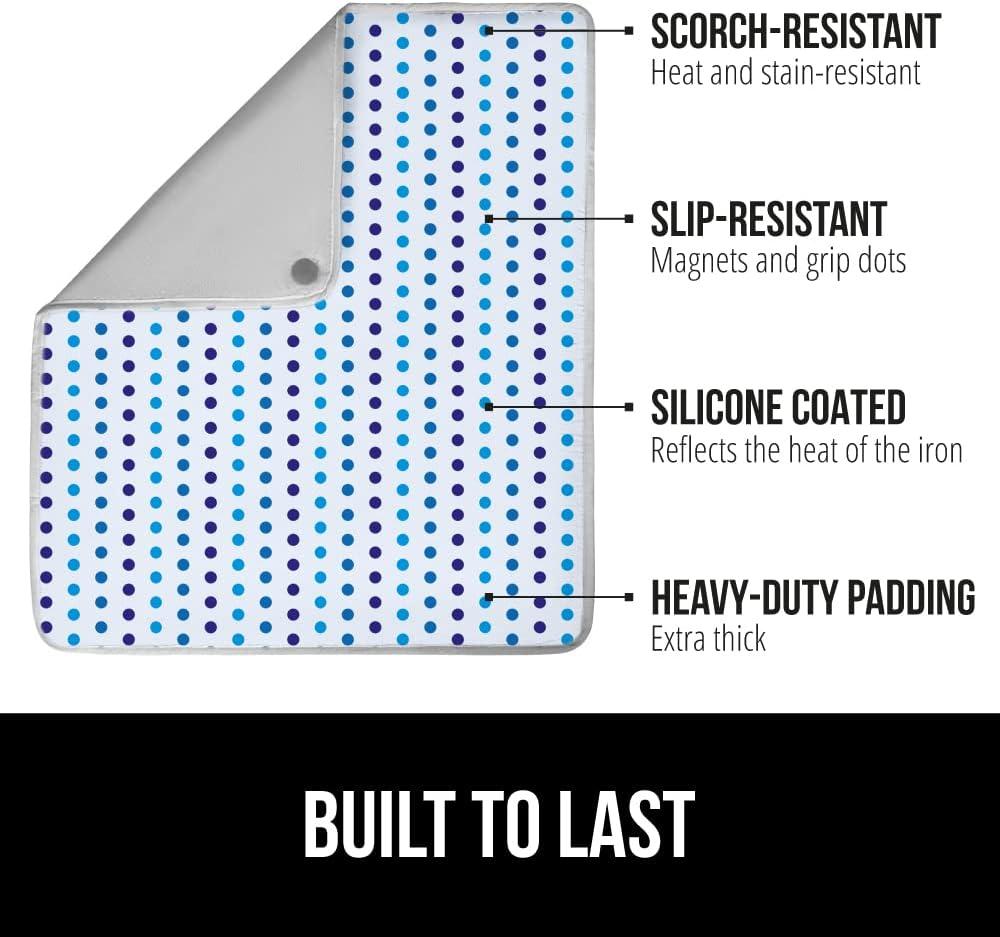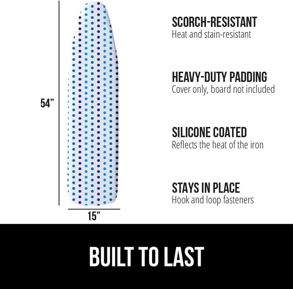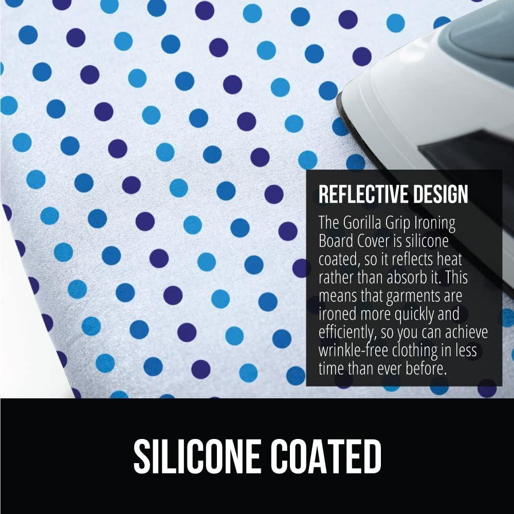 The Original GORILLA GRIP Ironing Board Cover and Pad, Silicone Coating, Thick Scorch Resistant Padding, Heavy Duty Iron Covers Standard Boards, Hook and Loop Fastener Strap, Silver, 15x54(Blue Dots)