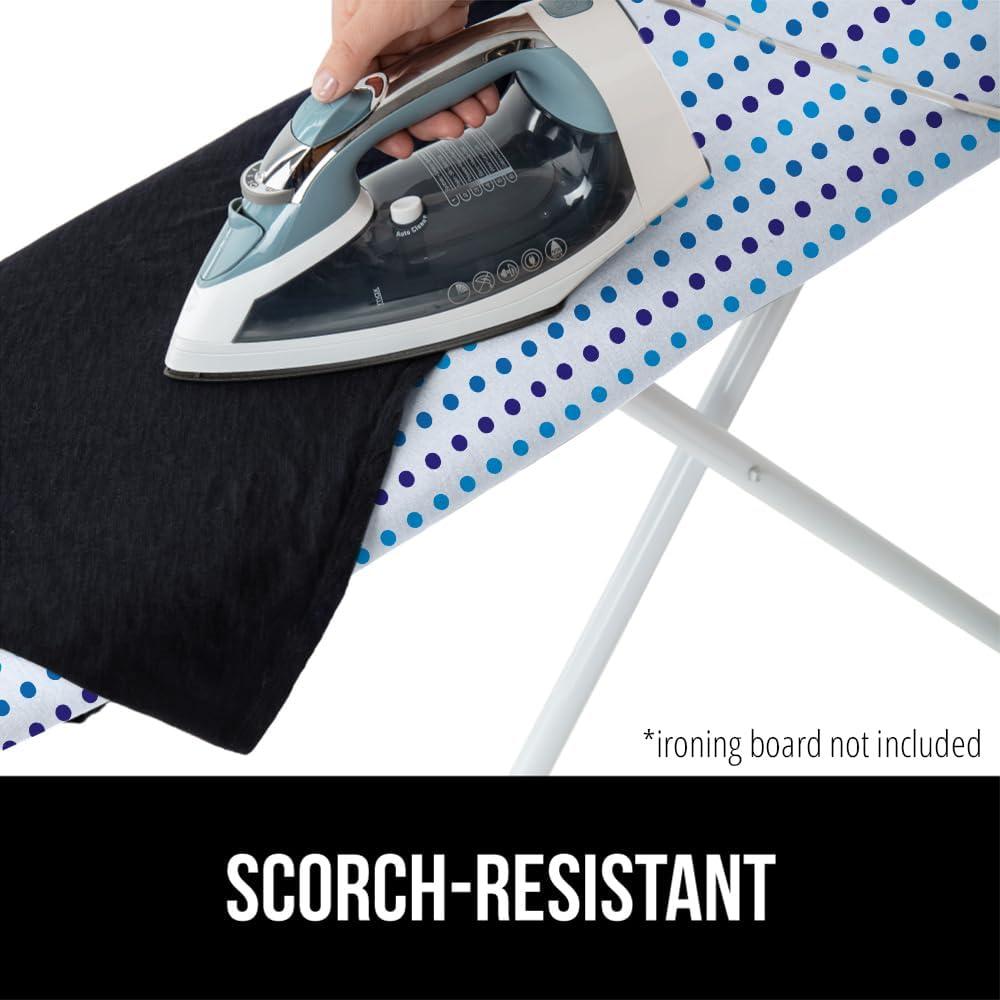 HEAT, SCORCH, AND STAIN RESISTANT: heavy duty ironing board cover with extra thick padding is heat and scorch resistant up to 400 degrees; water and stain resistant for long lasting use