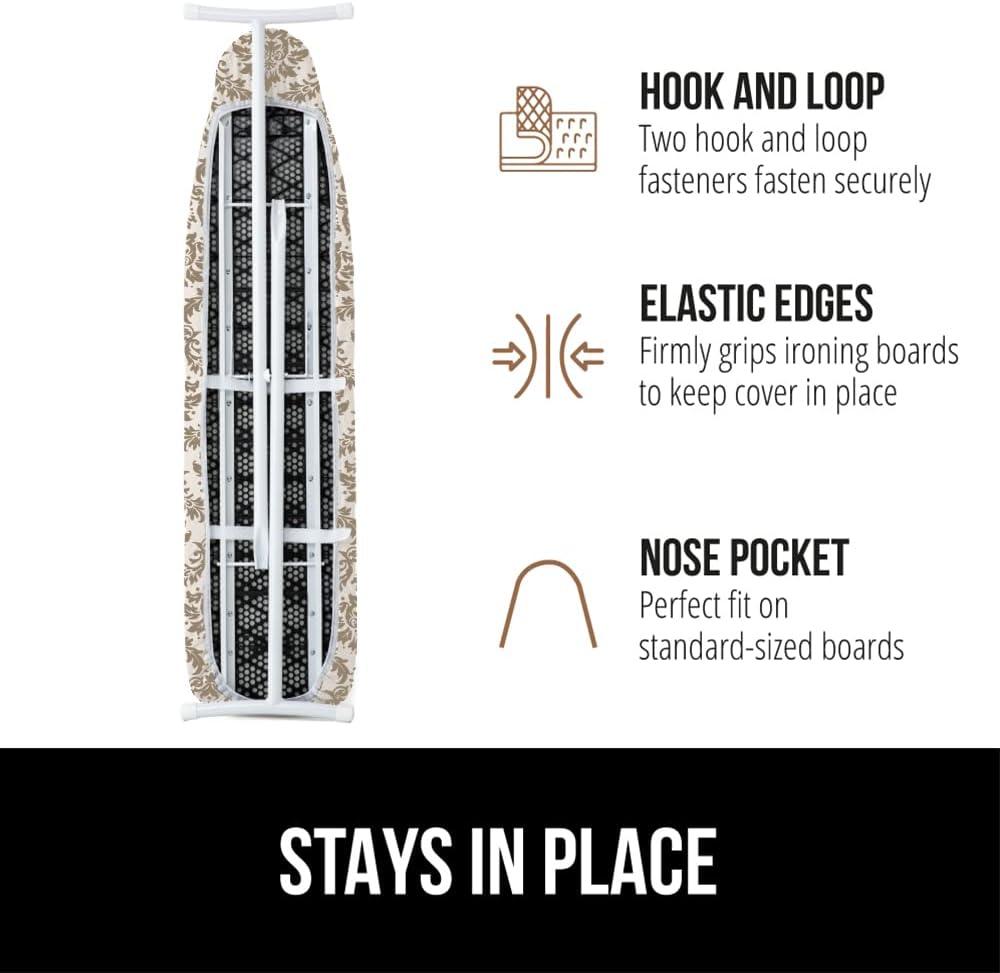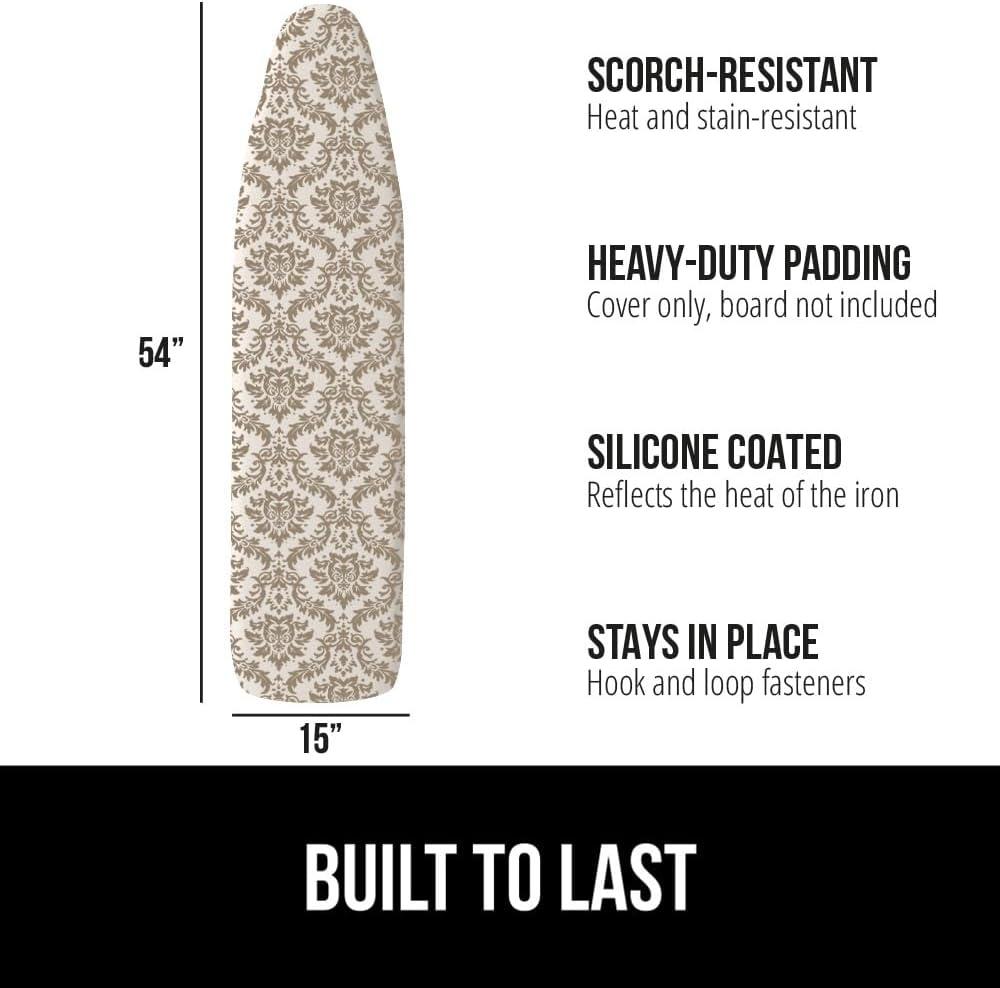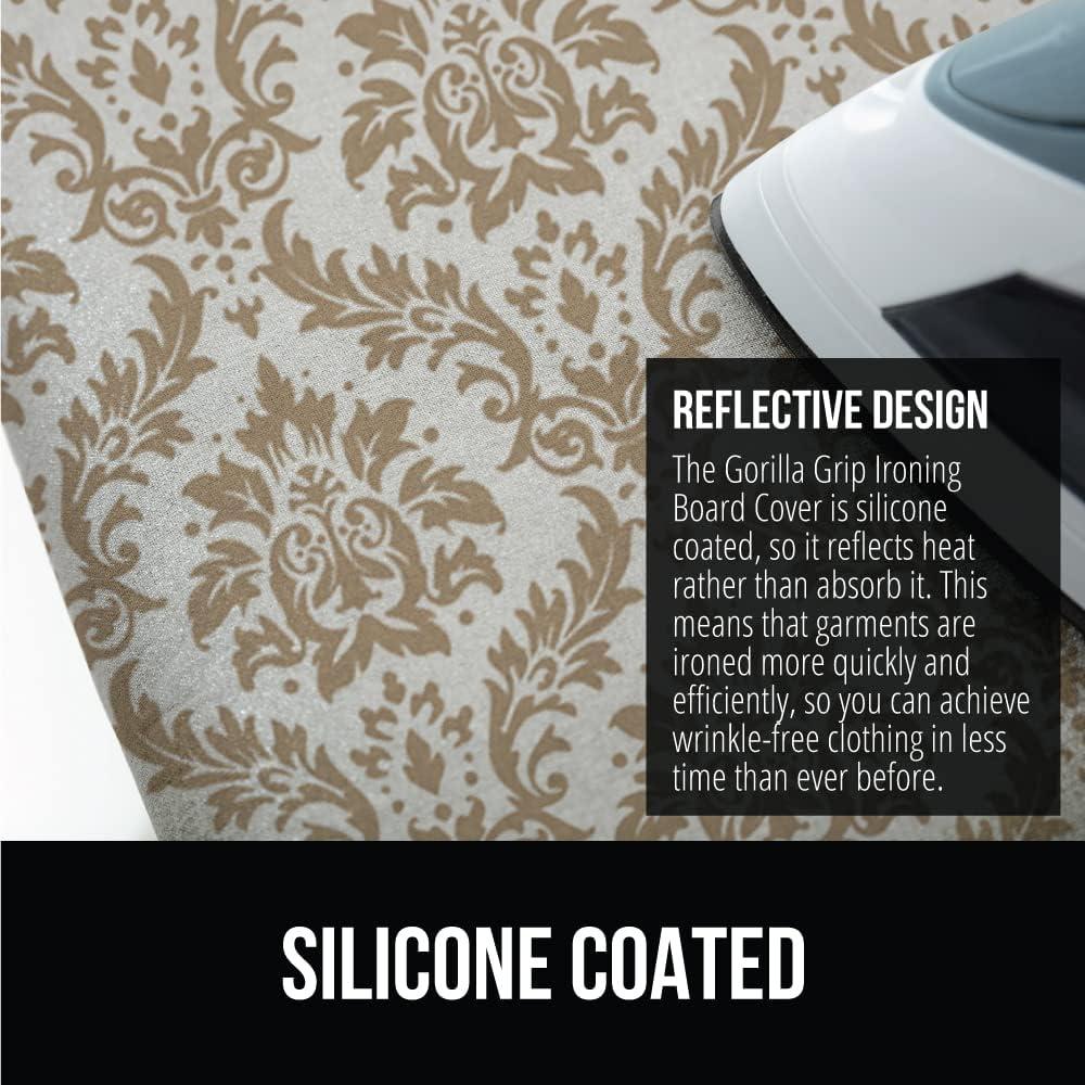 The Original GORILLA GRIP Ironing Board Cover and Pad, Silicone Coating, Thick Scorch Resistant Padding, Heavy Duty Iron Covers Standard Boards, Hook and Loop Fastener Strap, Silver, 15x54(Damask)
