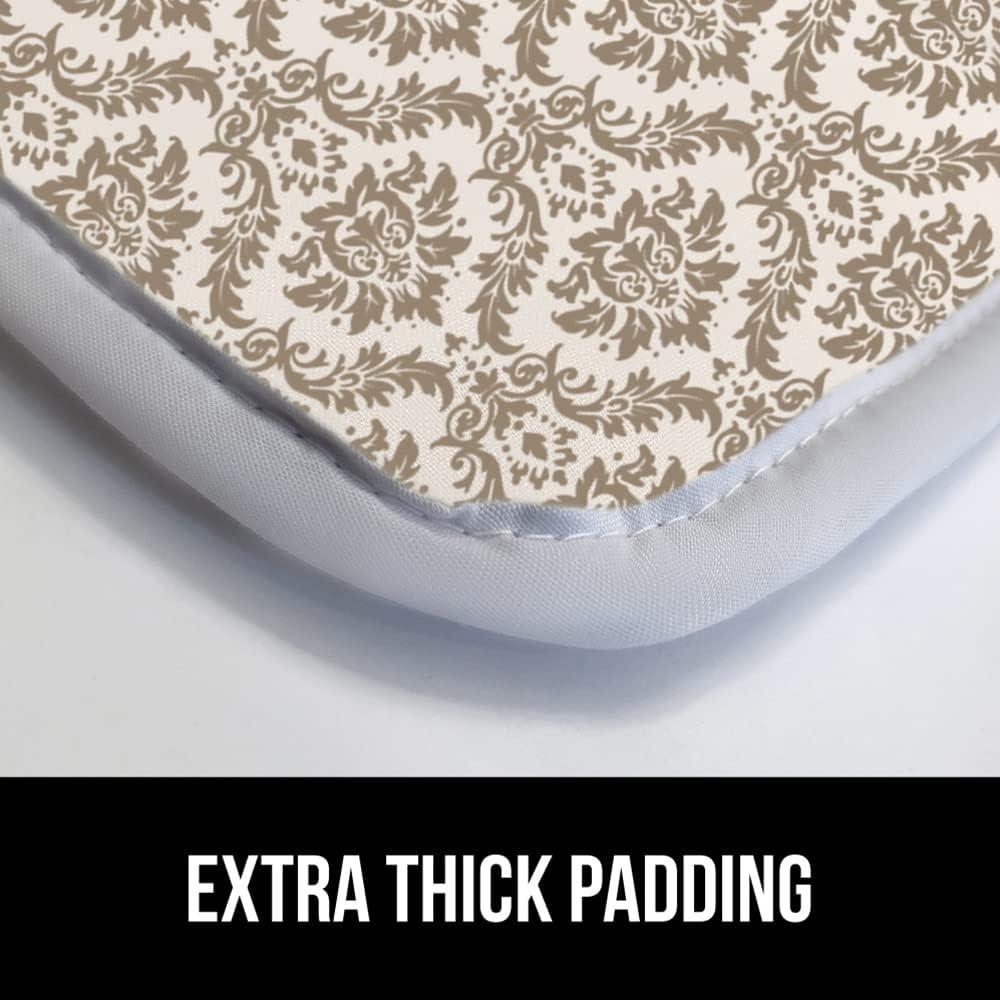 EXTRA THICK PADDING: cover is extra thick and provides a durable barrier between clothing and the ironing board, so that the mesh from the board will not transfer to your clothing