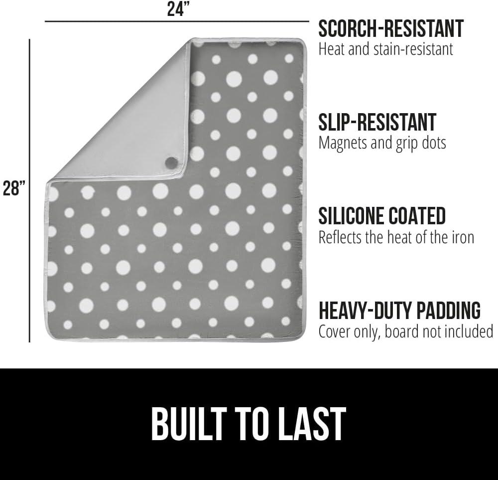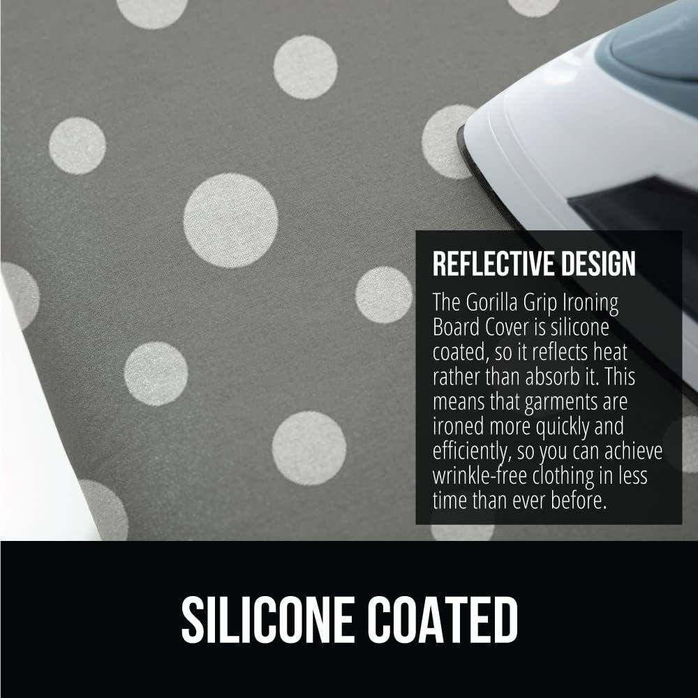 The Original GORILLA GRIP Ironing Board Cover and Pad, Silicone Coating, Thick Scorch Resistant Padding, Heavy Duty Iron Covers Standard Boards, Hook and Loop Fastener Strap, Silver, 15×54(Dots)