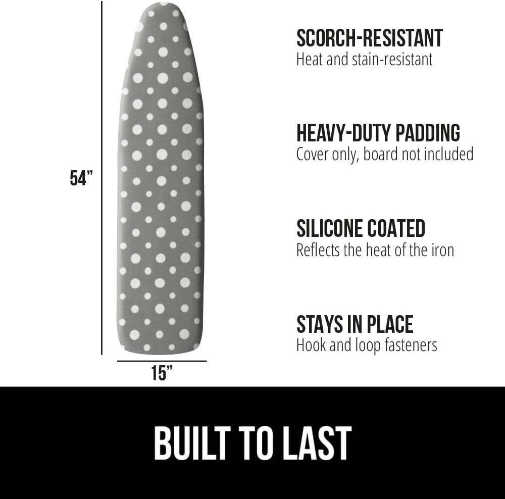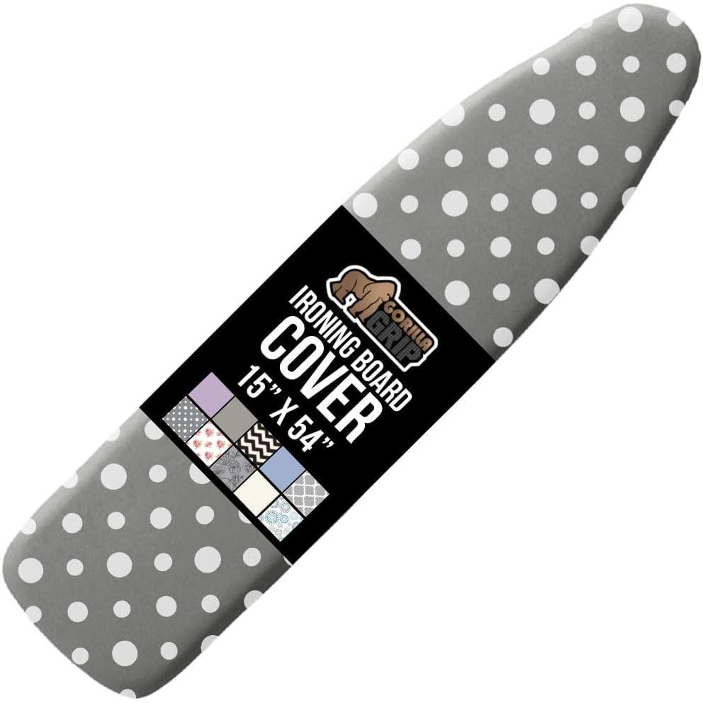 The Original GORILLA GRIP Ironing Board Cover and Pad, Silicone Coating, Thick Scorch Resistant Padding, Heavy Duty Iron Covers Standard Boards, Hook and Loop Fastener Strap, Silver, 15x54(Dots)