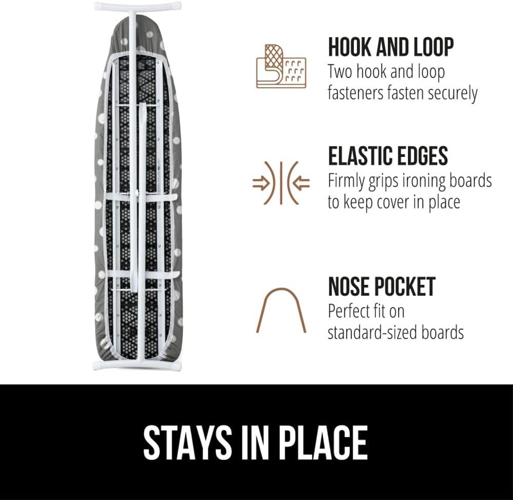EXTRA THICK PADDING: cover is extra thick and provides a durable barrier between clothing and the ironing board, so that the mesh from the board will not transfer to your clothing