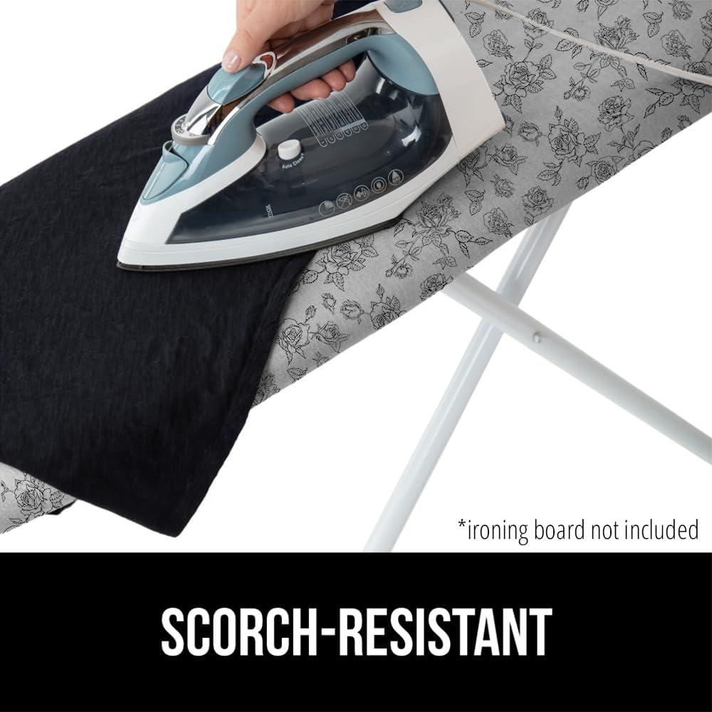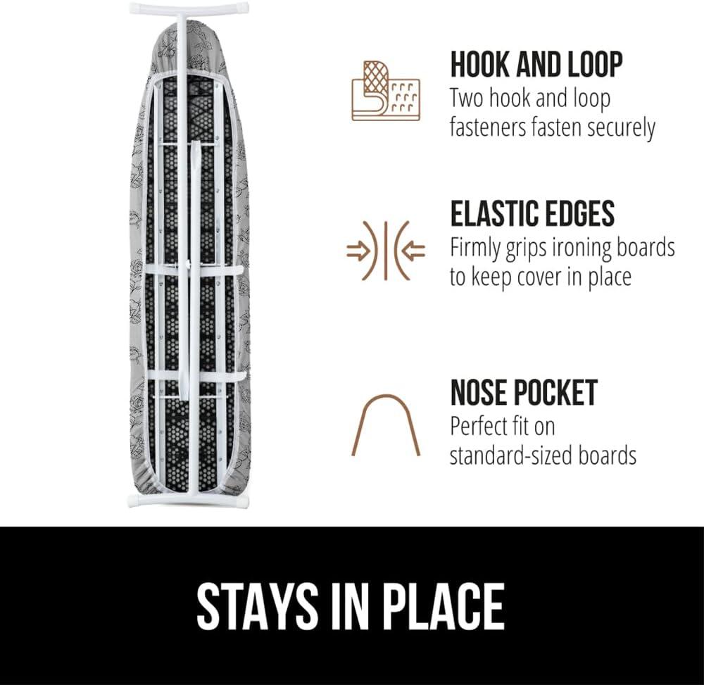 The Original GORILLA GRIP Ironing Board Cover and Pad, Silicone Coating, Thick Scorch Resistant Padding, Heavy Duty Iron Covers Standard Boards, Hook and Loop Fastener Strap, Silver, 15×54(Gray Floral)