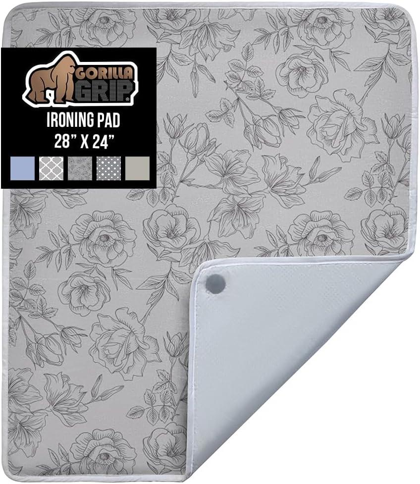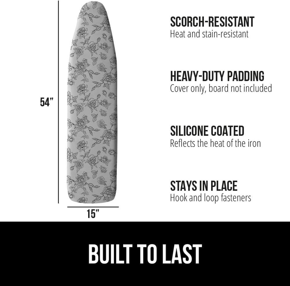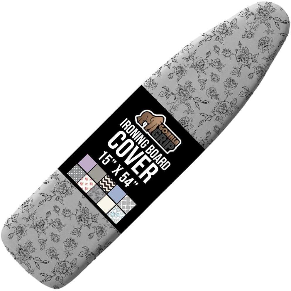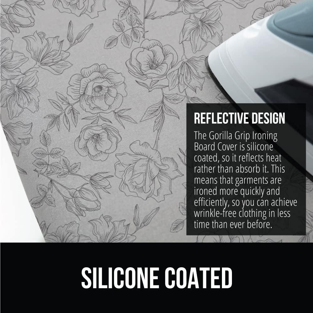 The Original GORILLA GRIP Ironing Board Cover and Pad, Silicone Coating, Thick Scorch Resistant Padding, Heavy Duty Iron Covers Standard Boards, Hook and Loop Fastener Strap, Silver, 15x54(Gray Floral)