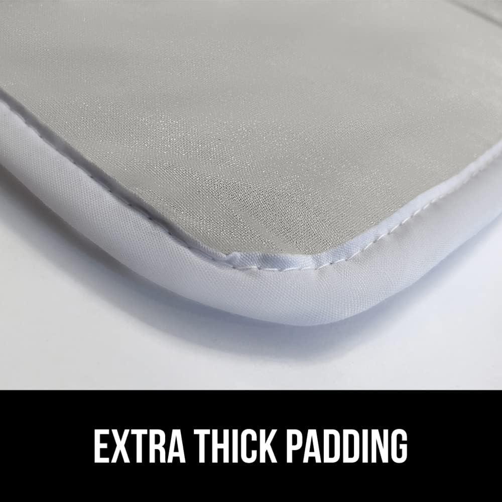 EXTRA THICK PADDING: cover is extra thick and provides a durable barrier between clothing and the ironing board, so that the mesh from the board will not transfer to your clothing